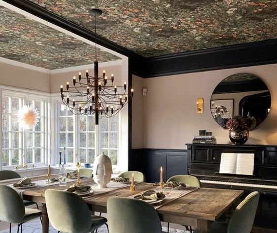 Algunas veces cuando estamos renovando nuestros espacios nos olvidamos de que el techo es una parte muy importante de este y simplemente nos limitamos a darle una mano de pintura. Una de las tendencias que viene con fuerza es darle mas personalidad a esta parte de el espacio, esto se logra por ejemplo volviéndolo el punto focal de un espacio, o simplemente agregando un papel de colgadura, por eso este 2020 no nos olvidemos del techo y démosle un poco de amor.